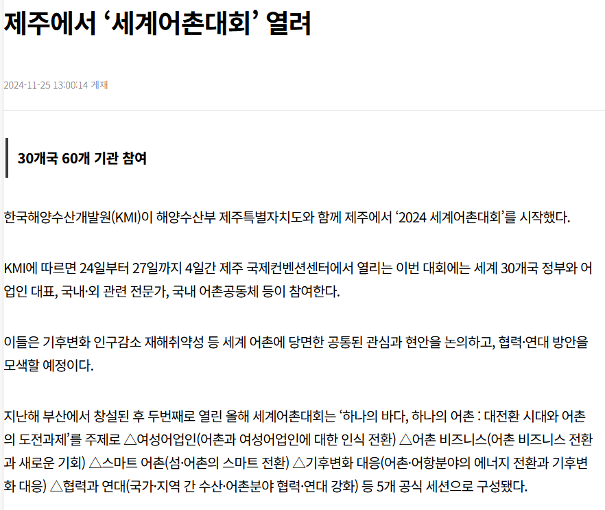 목록 [내일신문] 제주에서 ‘세계어촌대회’ 열려 페이지 정보 작성자 최고관리자 이메일 admin@domain.com 작성일 24-11-26 본문 . 관련링크 https://www.naeil.com/news/read/530024?ref=naver 294회 연결 이전글 [한국농어민신문] ‘2024 세계어촌대회’ 제주서 개막 24.11.26 목록 다음글 [뉴시스] "대전환시대, 어촌의 도전 과제"…24~27일 세계어촌대회 24.11.26
