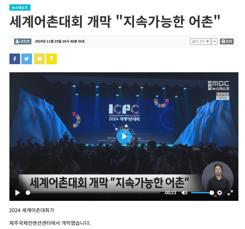 목록 [제주MBC] 세계어촌대회 개막 "지속가능한 어촌" 페이지 정보 작성자 최고관리자 이메일 admin@domain.com 작성일 24-11-26 본문 . 관련링크 https://jejumbc.com/article/qDkUOe4J_mhvoWqK_S 329회 연결 이전글 [목포MBC] 한국섬진흥원, 2024 세계어촌대회에서 서남해안 섬 가치 알려 24.11.26 목록 다음글 [국제신문] ‘지속 가능한 어촌’ 30개국 전문가 머리 맞대 24.11.26