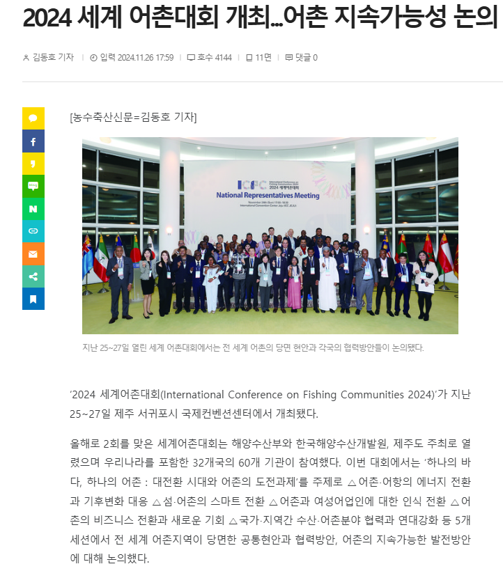 목록 [농수축산신문] 2024 세계 어촌대회 개최...어촌 지속가능성 논의 페이지 정보 작성자 최고관리자 이메일 admin@domain.com 작성일 24-12-03 본문 . 이전글 [현대해양] 2024 세계 어촌대회 개최...지속 가능한 어촌 발전 논의 24.12.03 목록 다음글 [부산MBC] 제주서 세계어촌대회 개최..′지속 가능 어촌′ 24.11.26