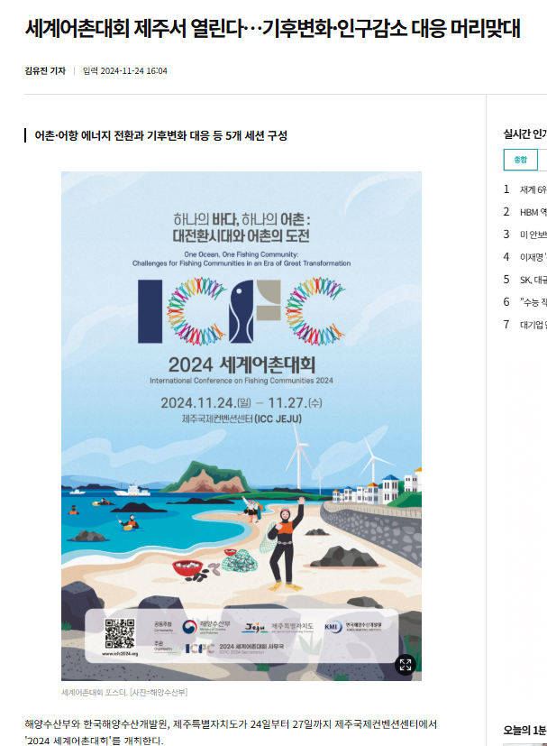 목록 [아주경제] 세계어촌대회 제주서 열린다…기후변화·인구감소 대응 머리맞대 페이지 정보 작성자 최고관리자 이메일 admin@domain.com 작성일 24-11-26 본문 . 관련링크 https://www.ajunews.com/view/20241124160317570 297회 연결 이전글 [부산일보] [해수부 소식] 27일까지 제주서 `세계어촌대회`…위기 극복방안 논의外 - 부산일보 24.11.26 목록 다음글 [메트로신문] 2024 세계어촌대회' 제주서 24일 개막...30개국 참가 국제행사 발돋움 24.11.26