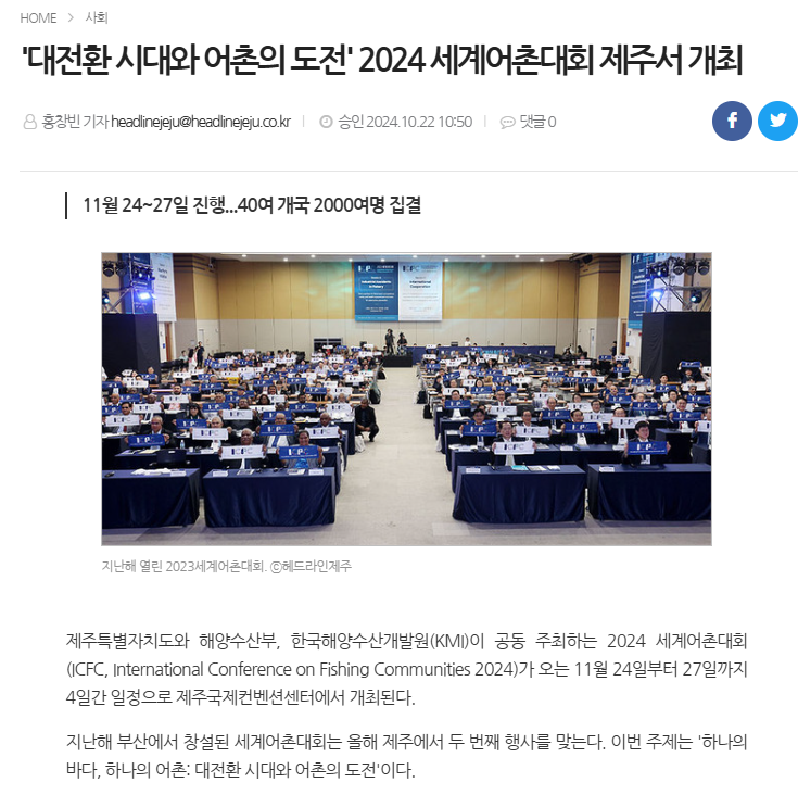 [헤드라인제주] '대전환 시대와 어촌의 도전' 2024 세계어촌대회 제주서 개최