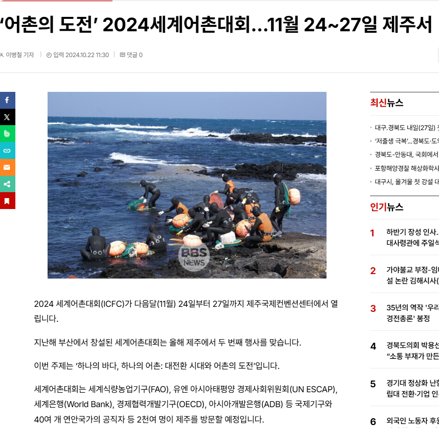 [BBS NEWS] ‘어촌의 도전’ 2024세계어촌대회...11월 24~27일 제주서