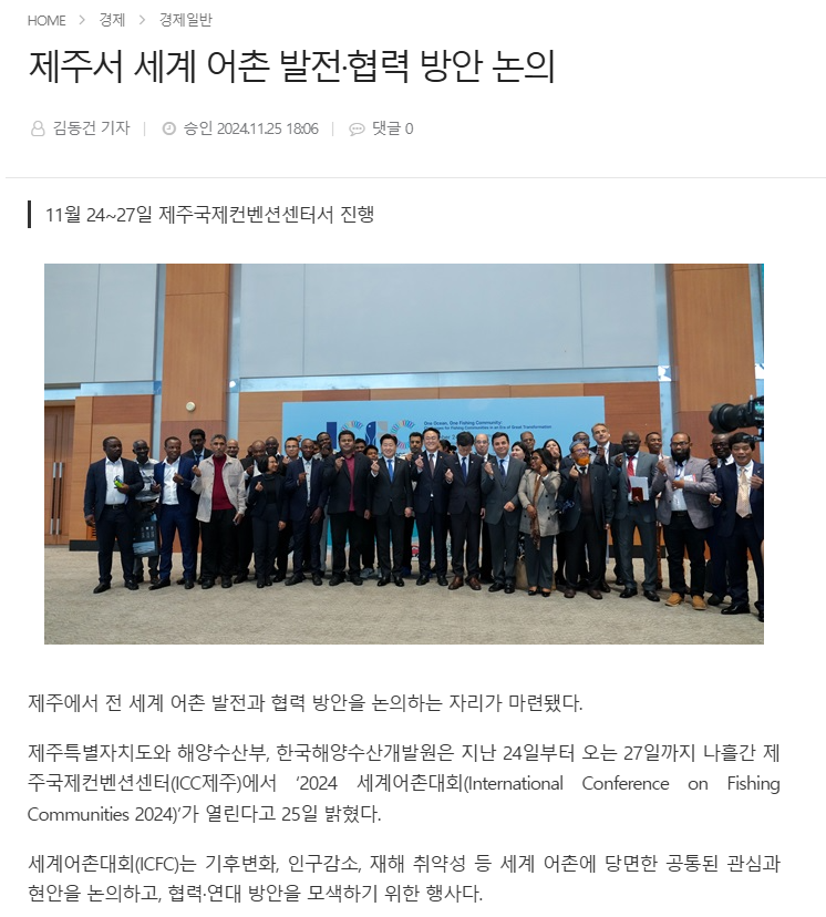 [삼다일보] 주서 세계 어촌 발전·협력 방안 논의