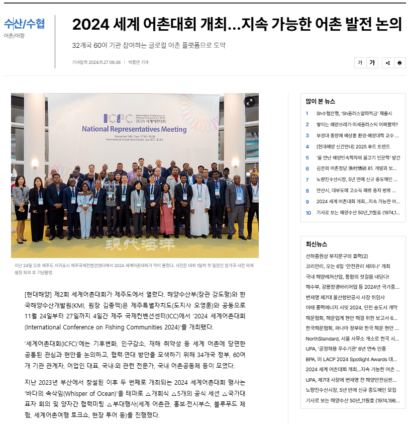 [현대해양] 2024 세계 어촌대회 개최...지속 가능한 어촌 발전 논의